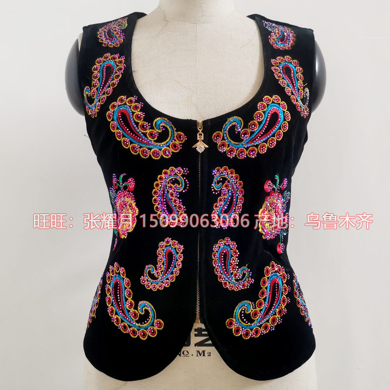 新疆维吾尔族民族表演舞蹈服饰春秋冬短款维族服装无袖马甲女上衣