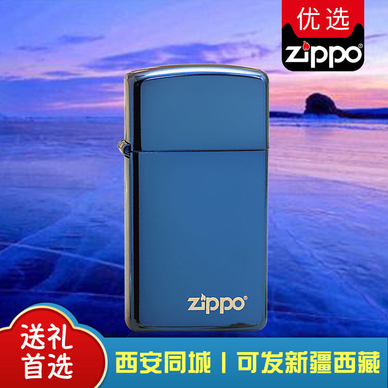 美国原装ZIPPO打火机 纤巧窄机蓝冰标志 煤油防风时尚个性女士机热门设计联盟服务商