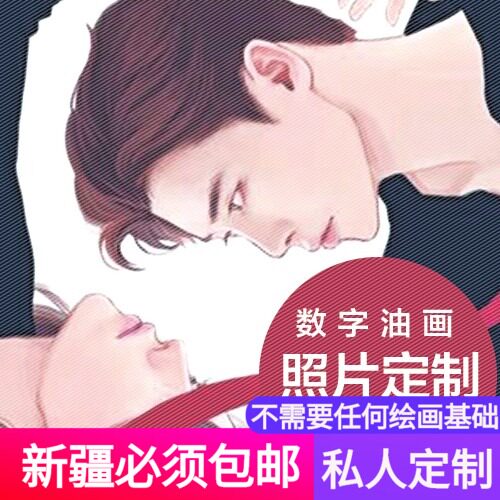 数字油画定制人物情侣照片油彩画DIY卧室客厅减压画小清新装饰。热门设计联盟服务商
