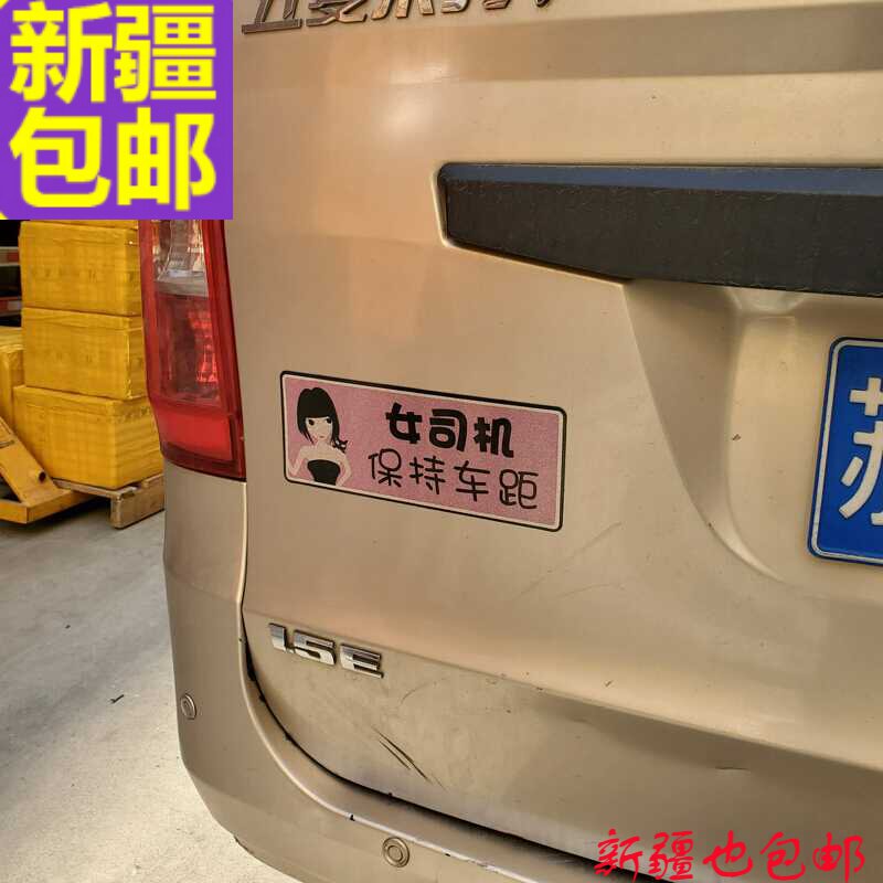 车贴磁性女司机保持车距新手上路实习车贴反光贴标志牌新疆。。热门设计联盟服务商