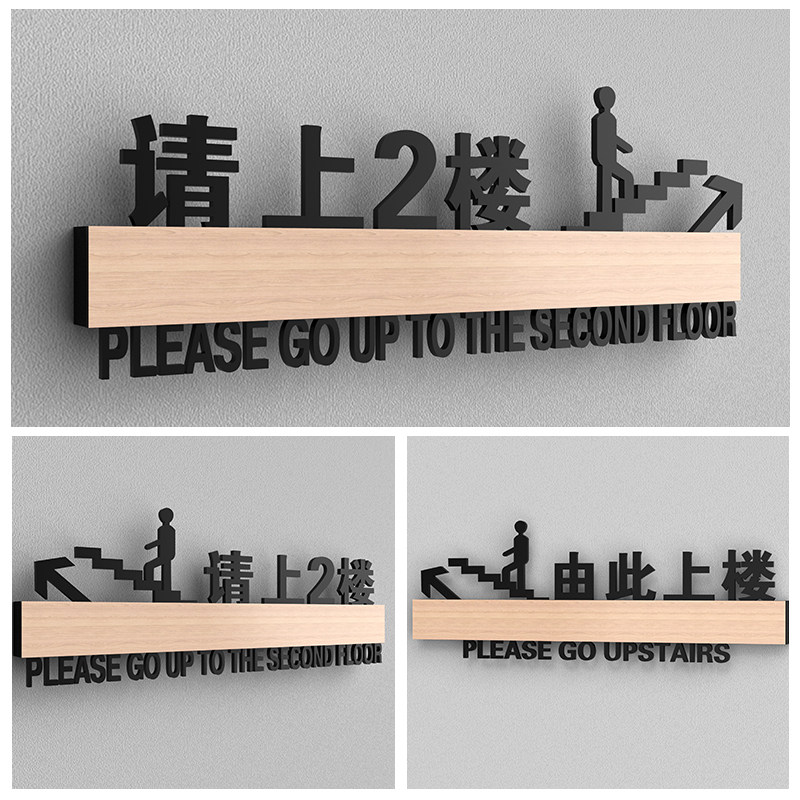 饭店墙面装饰火锅餐饮火锅请上二楼梯台阶指示牌创意标语贴画墙壁热门设计联盟服务商
