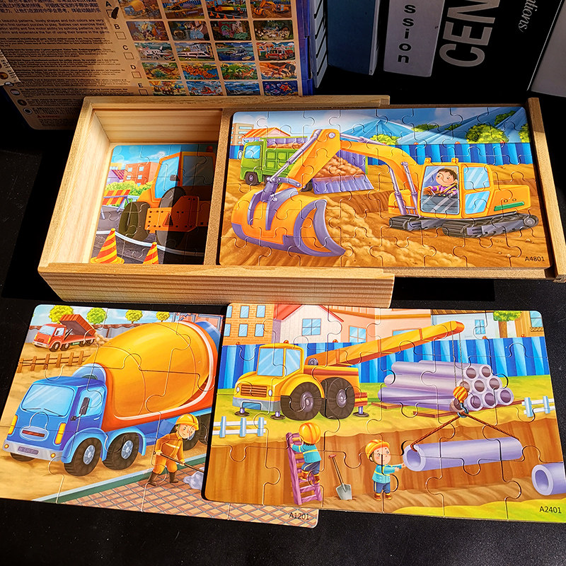 恐龙拼图2-3-木制儿童力早教男孩宝宝汽车交通工具挖土机 4岁热门设计联盟服务商