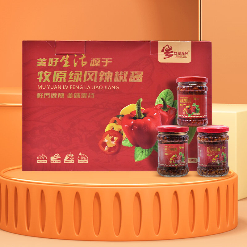 新疆牧原绿风辣椒丝下饭菜开罐即食香辣拌饭酱牛肉辣椒礼盒1000g热门设计联盟服务商
