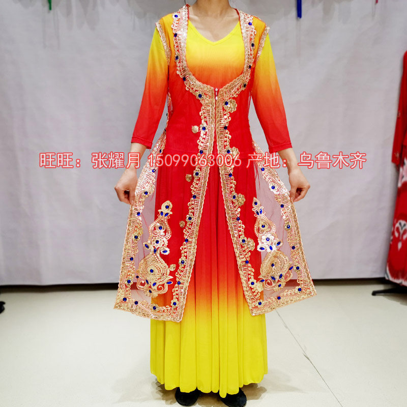 高档新疆维吾尔族民族表演舞蹈服饰春夏装女服装舞台服装女装长款热门设计联盟服务商