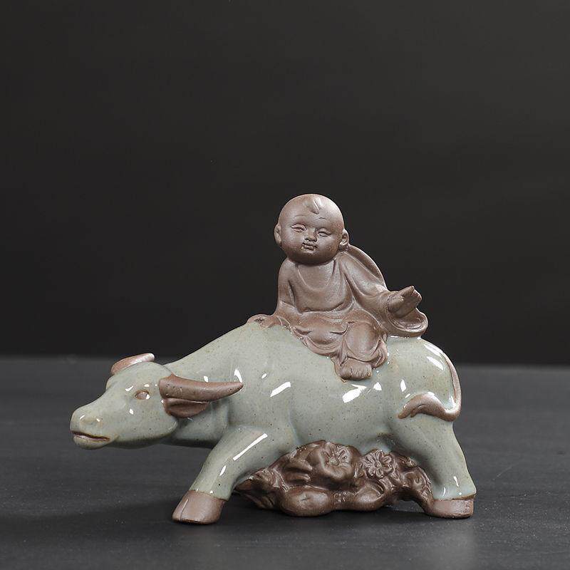 创意摆件开片茶艺可养牧童骑牛陶瓷茶盘摆件桌面微景观装饰品热门设计联盟服务商