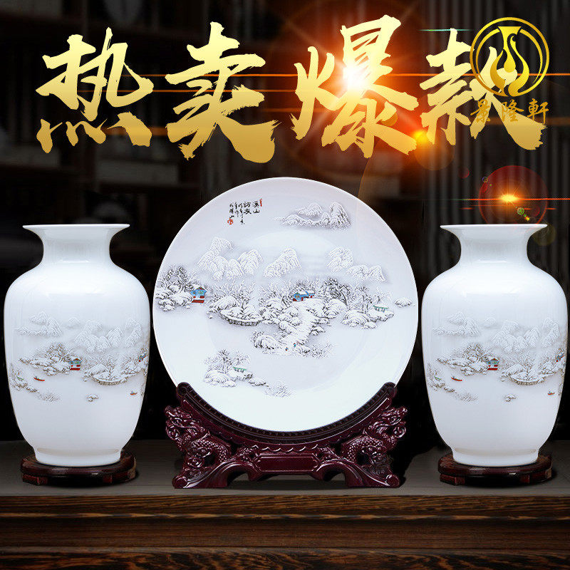 景德镇陶瓷器花瓶装饰品三件套中式家居工艺品客厅酒柜博古架摆件